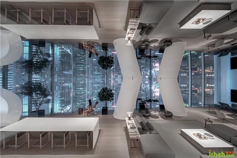 The conference room is like a variation of playing melody throughout the space. This is a space that is unfettered and breaks traditional rules. We put a white stainless steel sphere art installation in the space, just like an interstellar spaceship coming here, full of infinite imagination and mystery. The sphere can carry the conventional conference requirements, including a 4.8M × 2.7M giant LED screen and multimedia equipment embedded in it.