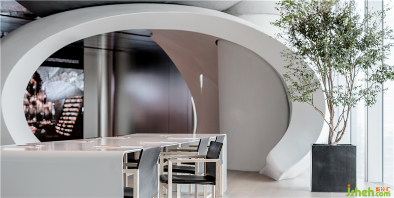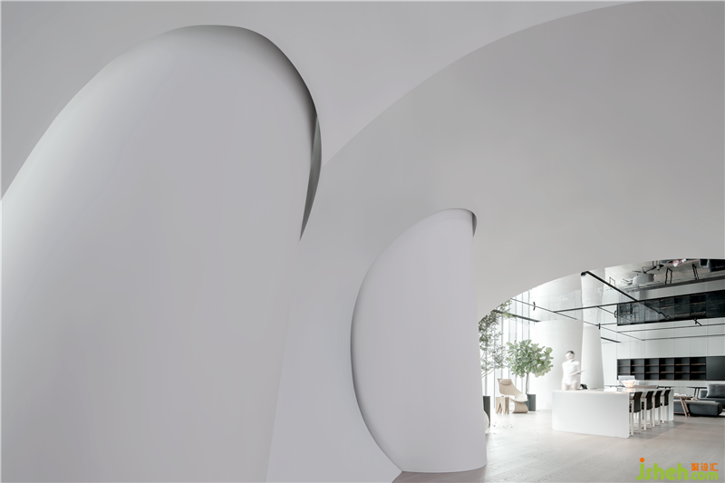 辦公區(qū)是使用頻率最高的區(qū)域,這里是設(shè)計作品產(chǎn)生的基地,設(shè)計原則是建立一種高效的開放式辦公秩序,簡潔干凈而嚴(yán)謹(jǐn); 不再受辦公桌限制,沒有邊界的形式可以鼓勵員工們交流。