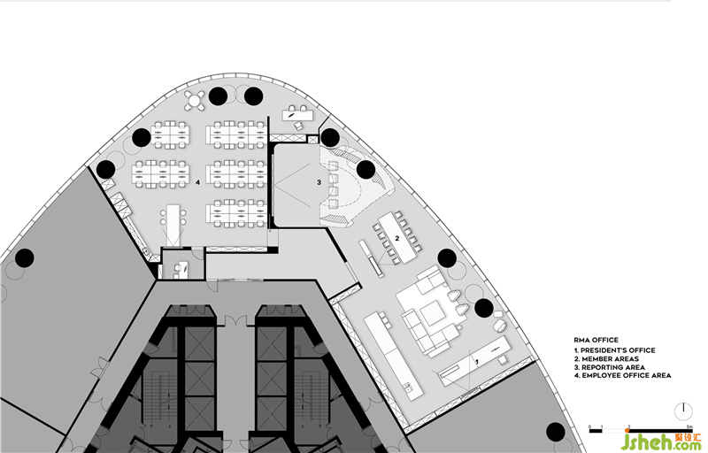 空間的質(zhì)量,在于它支持各種各樣的交流互動。多功能的空間讓工作不再乏味。在這里,創(chuàng)意想法可以自由的產(chǎn)生,同時還增加了工作效率,使員工能更積極的交流。RMA OFFICE的誕生,不僅解決了工作空間的共享,而且重塑在此情景中的人際關(guān)系與社交網(wǎng)絡(luò)。辦公室設(shè)計
