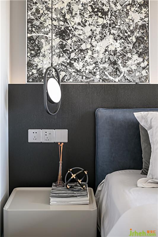 主衛(wèi)配合整體的設(shè)計格調(diào)——水泥灰色磚墻,紅褐色煙熏拉絲實木柜,還有幾處純白色裝置,簡單卻也別有一番清爽自然。