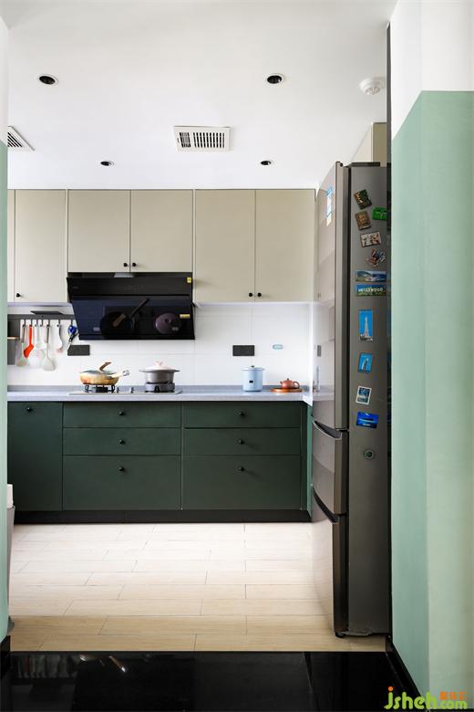 廚房的磚面、臺(tái)面也保養(yǎng)的很好,舊房改造設(shè)計(jì)重新搭配了顏色,換了柜門,就這樣簡(jiǎn)簡(jiǎn)單單,卻充滿力量。