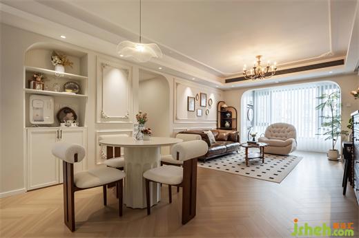 2.奶油白客廳通鋪人字拼木地板,墻面PU線搭配角花,弧形線面貫穿全屋,柔化空間氛圍,共同鋪貼法式風(fēng)的優(yōu)雅與浪漫。陽臺(tái)打通后,客廳不僅擁有了充沛采光,同時(shí)坐享絕佳的觀光視野,大落地窗搭配平拱門,讓這一隅成為屋主疲乏一天后自我放松的休閑小角落,養(yǎng)花種草、曬太陽、喝下午茶,是隨手都可以拍出雜志大片的程度。