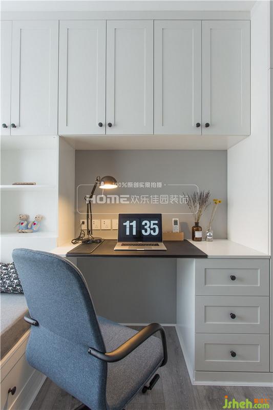 一個書房,辦公閱讀;一個客臥,供人休憩。這是老森和小花期待的家的一部分。于是室內設計師根據(jù)次臥的戶型結構,決定將房間設計成榻榻米形式,整體定制,實現(xiàn)客房功能的同時,滿足儲物需求。書桌、收納柜一體化設計,也實現(xiàn)了書房的功能,可謂是三全其美。