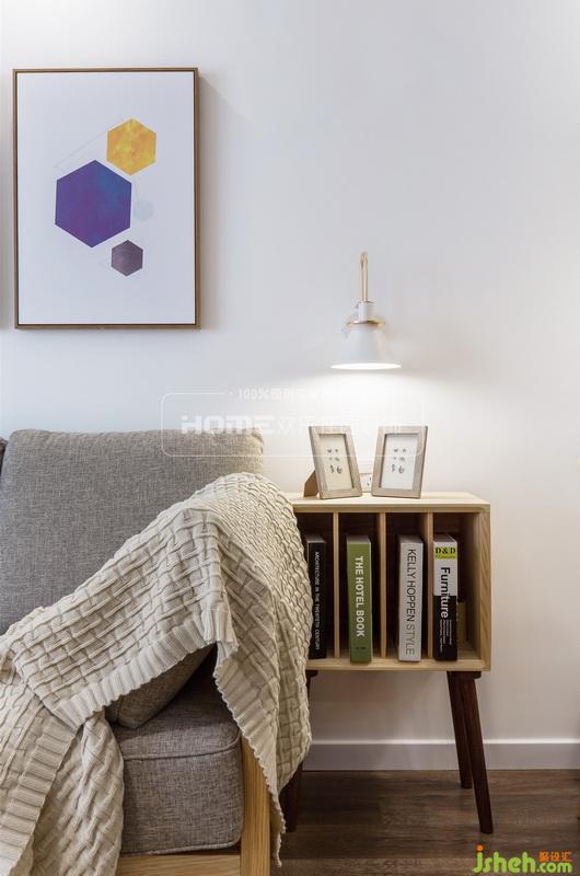 幾何圖案的裝飾畫與地毯相映成章,不同的形狀拼湊出美好的一天;角落里溫柔的光,在夜深人靜,滿足了最曼妙的幻想。