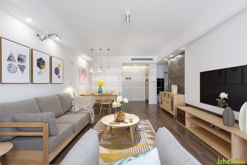 打開利落的窗,潔白的墻折射柔和的光,原木結構的茶幾與沙發(fā),樸素且落落大方,沒有冗雜的裝飾,干凈利落的是忙碌一天休憩的地方。