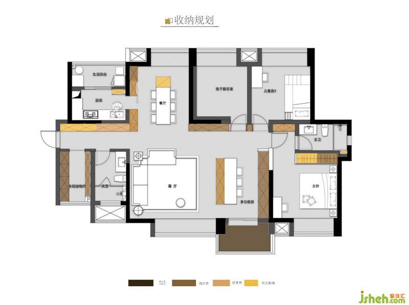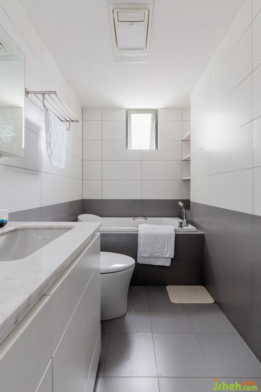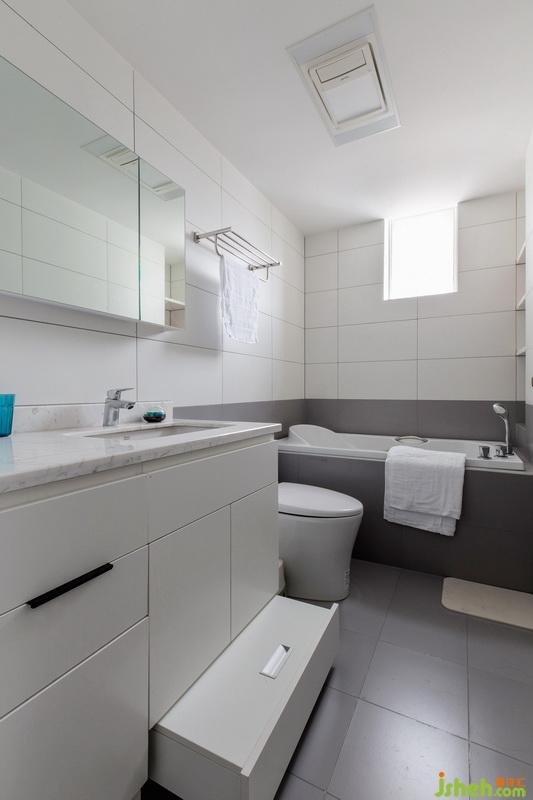 由于父母身高比較高,而小孩年齡較小,所以室內設計師在共同使用設備上要兼顧兩者的尺寸,在衛(wèi)生間使用頻率最高的洗臉柜,根據設計師要求特別找廠家定制了洗臉柜,柜體底部的抽屜可以讓小孩踩在上面洗漱,等長大了不在使用時下面可當做抽屜使用,兼顧現(xiàn)在及將來的使用變化,讓空間適應他們不同的家庭周期。