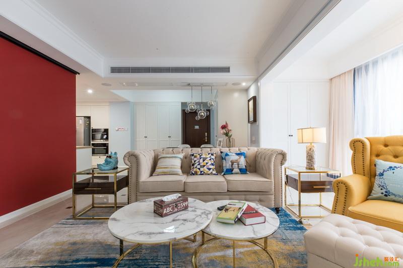 看膩了極簡空間的黑白灰,厭倦了北歐風(fēng)的木與白,是時候給家增添一抹溫柔藍了~空間中以海洋藍主色調(diào),但是避免室內(nèi)因為海洋藍過于“冷淡”,局部墻面選擇熱情的紅色。軟裝則挑選金屬元素的輕奢家具,提升空間的精致度。在地面鋪設(shè)上,設(shè)計師選擇了米色系地磚,局部空間挑選黃藍單品點綴,既避免整體空間色彩的單一性又保證了色彩的層次。