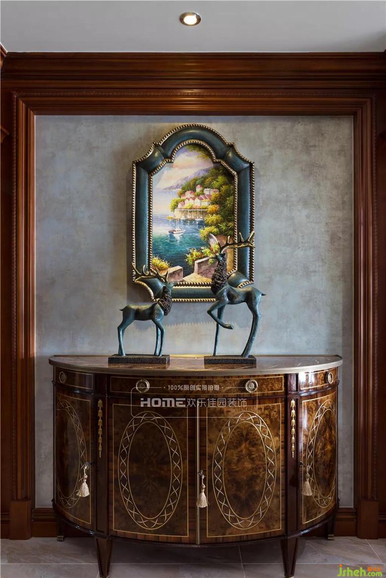 奢華鑲銅邊實(shí)木餐邊柜,與定制的實(shí)木墻框交相輝映,優(yōu)雅與浪漫,散發(fā)著迷人的情調(diào),保持華貴的氣質(zhì)之余,也充滿了變化與活動。