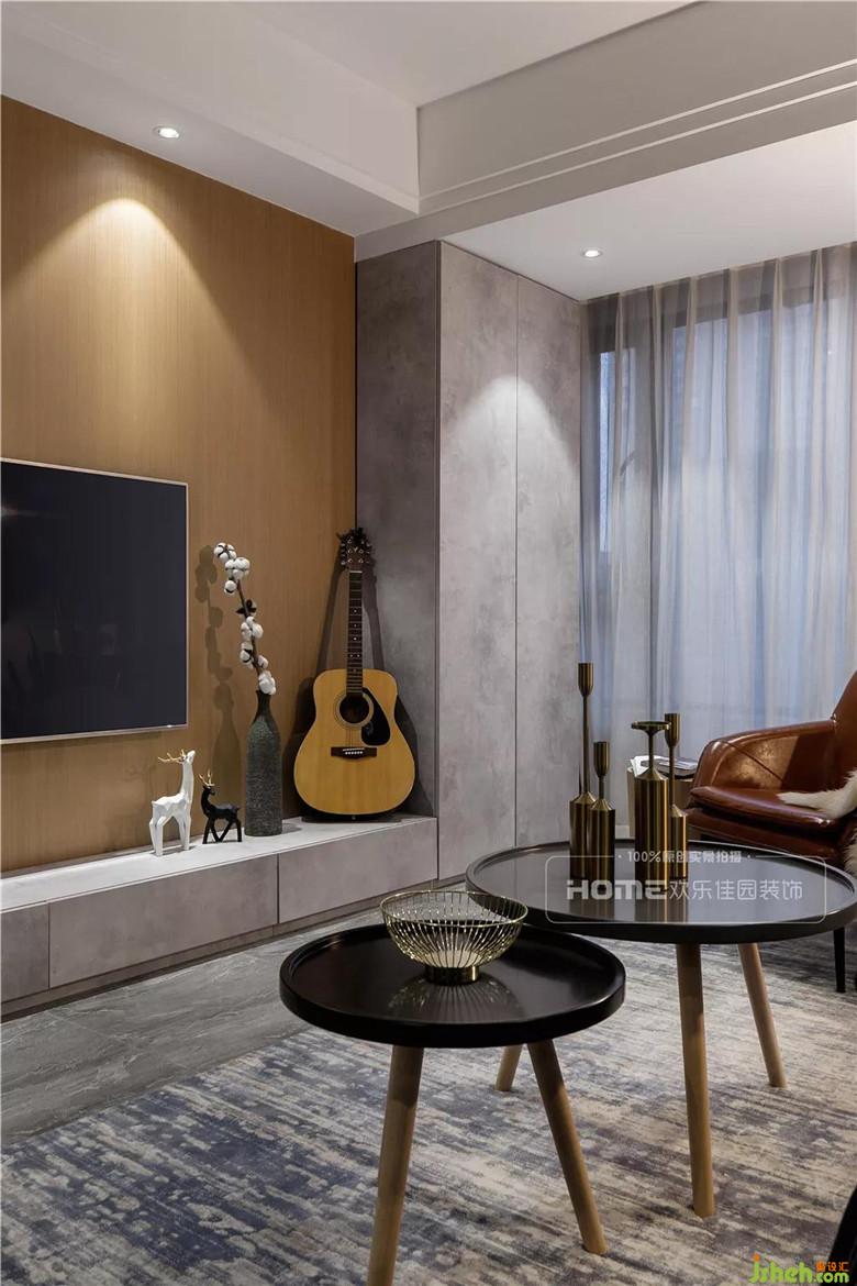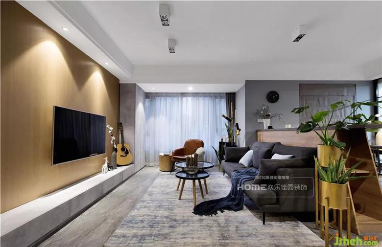 整體空間以灰色為主色調(diào),局部原木色相映襯,加之金屬質(zhì)感軟裝進(jìn)行渲染,不單一不復(fù)雜。電視背景墻設(shè)計成實木墻板,木質(zhì)的溫度與質(zhì)感,更好的起到柔化空間氛圍的作用,提升整體家居的檔次。