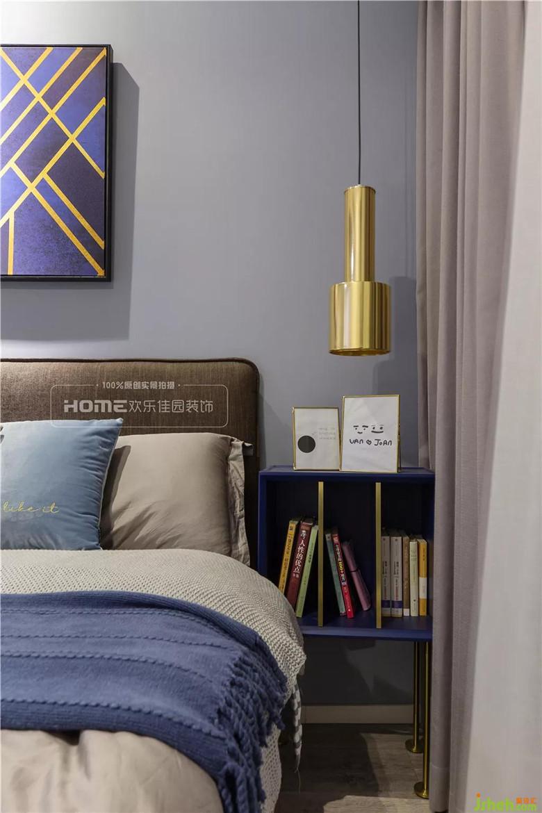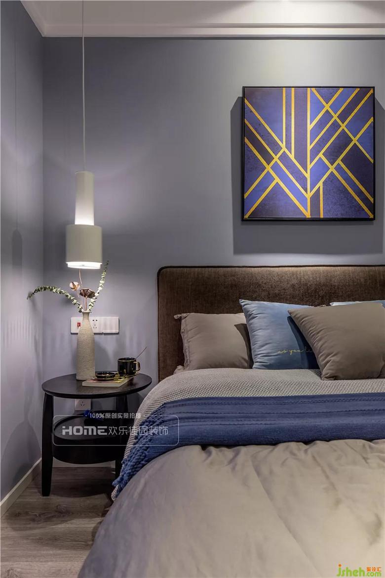 主臥是飽滿而富有內(nèi)涵的,柔和的藍灰色與米白色強化了現(xiàn)代風(fēng)格的概念,形狀各異的床頭柜、抽象現(xiàn)代掛畫,以刺激或奇異的方式組合在一起,巧妙利用顏色的明暗變化,塑造出沉穩(wěn)、空靈的家居體驗。
