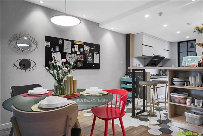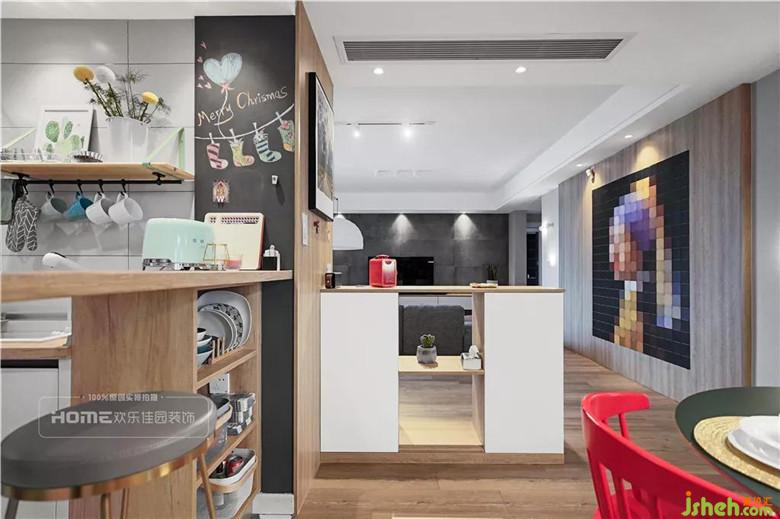 Miss張想要有個開放式的廚房,但由于原廚房面積偏小,需要重新規(guī)劃空間與空間之間的界定,設(shè)計(jì)師在廚房改造時做了放大處理,將廚房空間向生活陽臺外擴(kuò)一部分,此增彼減,把開放式廚房和餐廳形成一體的空間。