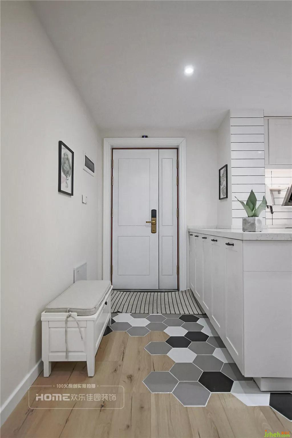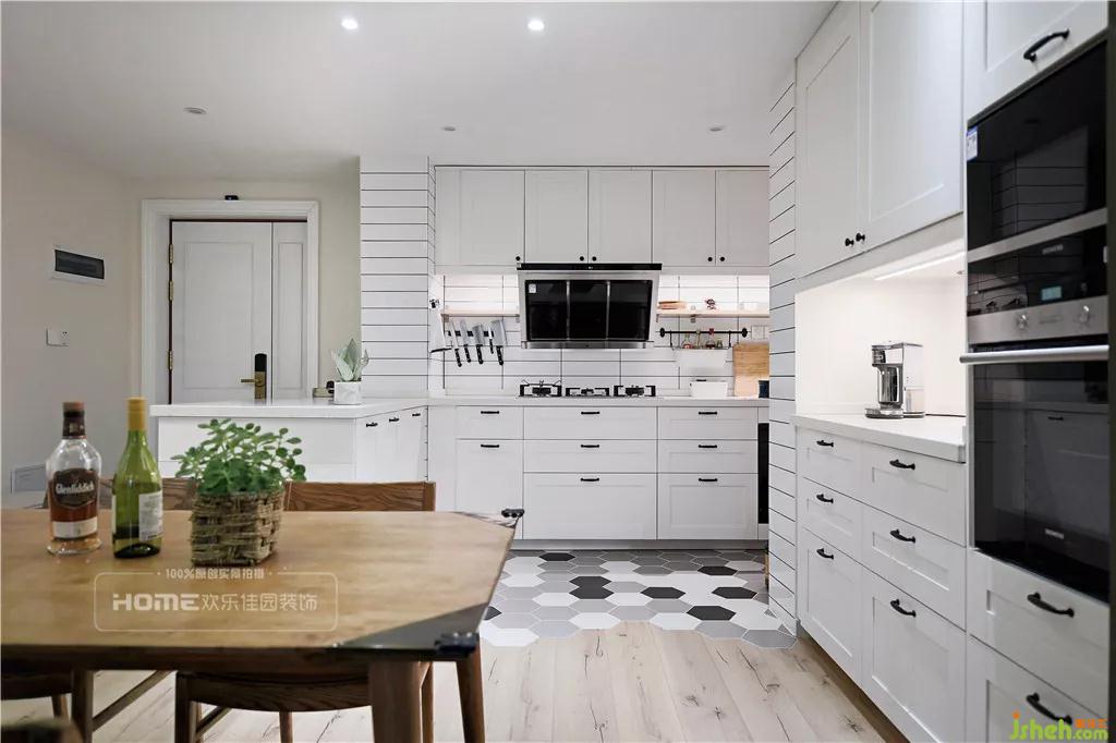 設(shè)計(jì)師征求濮先生意見(jiàn)后,考慮將生活陽(yáng)臺(tái)封閉以及拆除廚房和入戶的墻體。設(shè)計(jì)成現(xiàn)在的廚房和入戶柜體背靠背的雙面柜,一面是“u”型櫥柜,一面是鞋柜,擴(kuò)大了進(jìn)門的視覺(jué)空間,又使得廚房的操作和儲(chǔ)物成倍的提升。