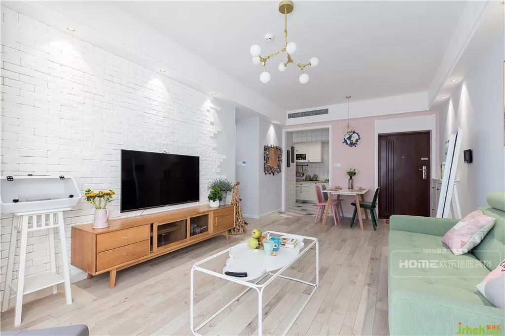 清淺的綠,夢幻的粉,略顯跳躍與奪目的原木,在這方極致純凈的空間里,顯得更加平衡也更有格調。因考慮到環(huán)保,設計師在選材上大多數(shù)兼具環(huán)保和美觀特性的元素,文化磚、棉麻沙發(fā)、實木電視柜......