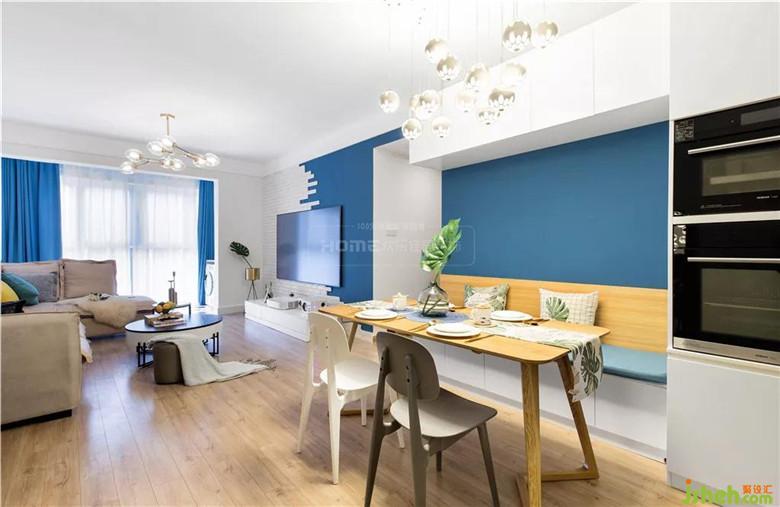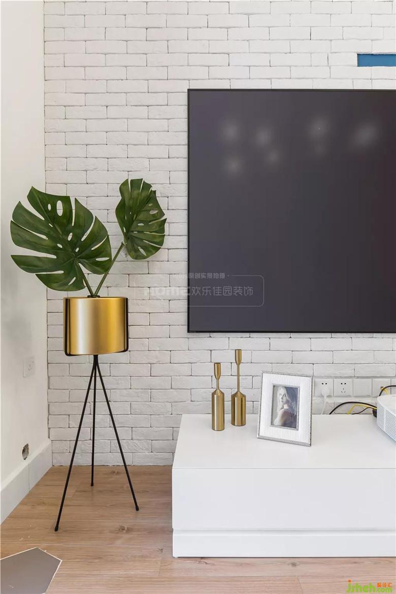 白色文化磚與藍(lán)色墻漆相互映襯,使得空間層次更加分明。因?yàn)榧揖呤菢I(yè)主自購(gòu),在電視柜和激光電視機(jī)的選用上,李先生花了好大一番心思呢。