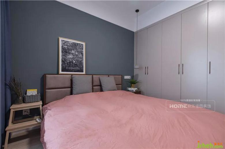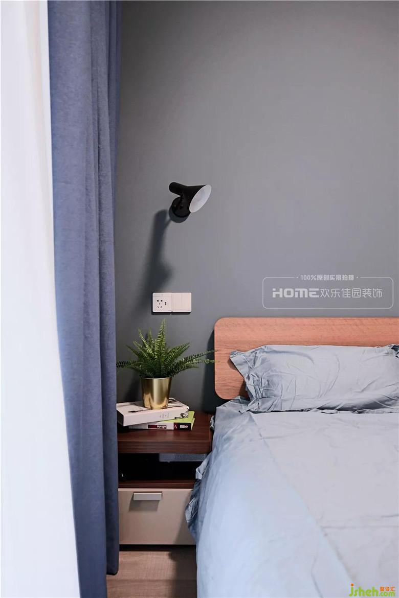 次臥墻體向客廳區(qū)域外移120公分,增加了一個(gè)常規(guī)床頭柜和儲(chǔ)物柜的長(zhǎng)度,通過(guò)改變次臥結(jié)構(gòu)來(lái)滿(mǎn)足小臥室的儲(chǔ)物問(wèn)題,以簡(jiǎn)單的淺灰色打底,渲染出隨遇而安的居住氛圍。