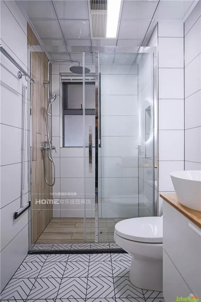 次衛(wèi)的亮點(diǎn)設(shè)計(jì)是魚(yú)骨紋地磚和自帶特效的鏡子。帶有北歐風(fēng)元素的地磚花式鋪貼,主推魚(yú)骨紋,地磚并行排列,線(xiàn)條的力度與次衛(wèi)相配合;圓形的鏡面,背面一圈的燈帶,增加了空間的精致感受。
