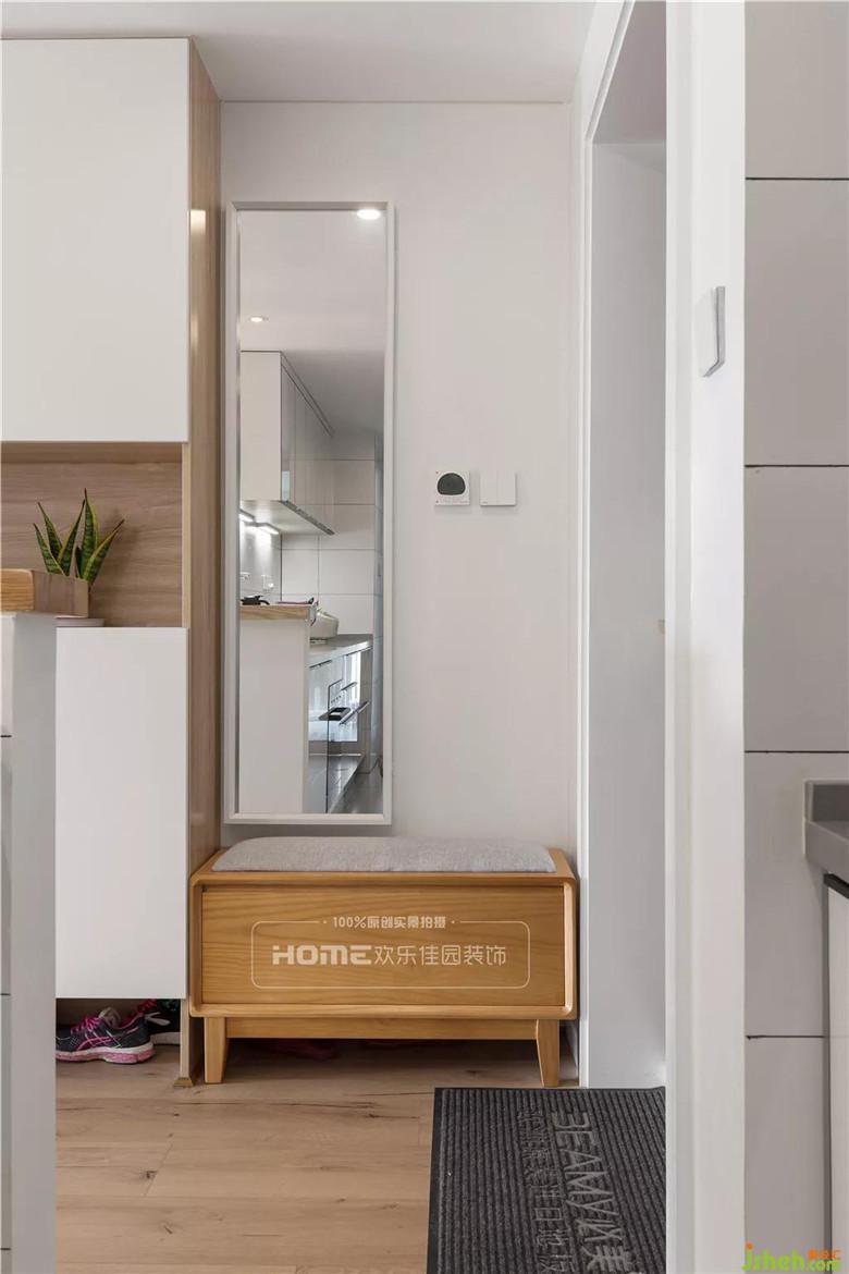 入戶設(shè)計超長的柜體,融合換鞋凳、鞋柜、展示柜、餐廳收納等功能,精心設(shè)計的現(xiàn)代組合柜,一字型布局,方便各項工作的連續(xù)操作,既有充分的活動空間,又保證S小姐對儲物的需求。