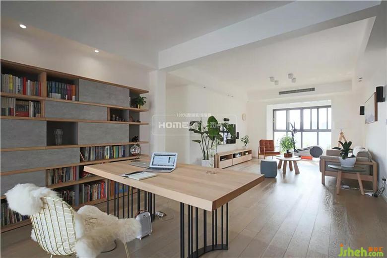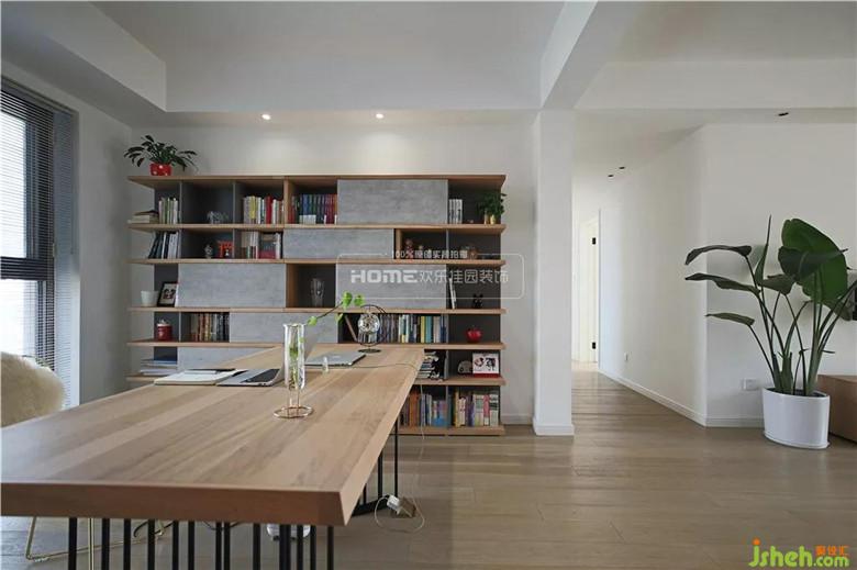 書(shū)房作為家中文化的主要體現(xiàn)怎么能忽略呢?倆人都是工作狂,室內(nèi)設(shè)計(jì)師為了滿足他們對(duì)書(shū)房的需求,選擇在公共區(qū)域隔斷出一個(gè)空間作為獨(dú)立的工作區(qū),為了不影響整體客廳的效果,特意設(shè)計(jì)成開(kāi)放式的形式。