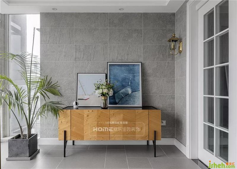 空間開闊又與眾不同,鋪貼水泥灰的地磚和墻磚,大氣簡潔,大面積的落地窗,引入自然光線,搭配不同色系的魚骨拼端景柜,讓人產(chǎn)生意想不到的視覺效果。