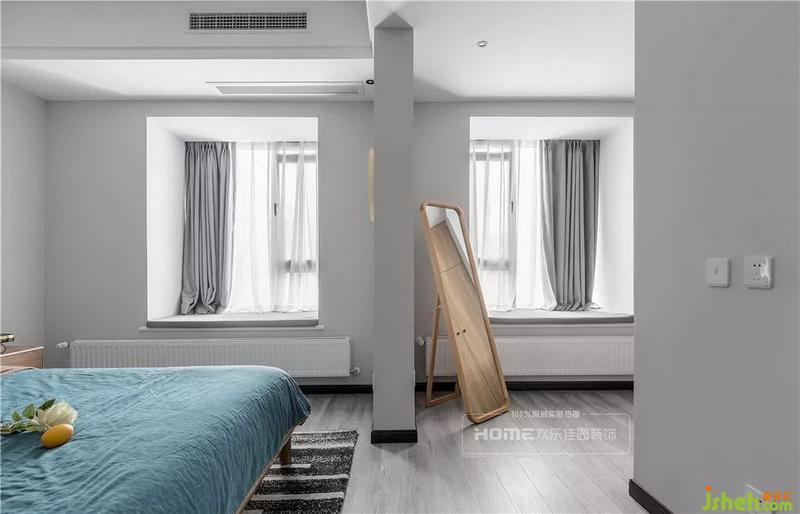 臥室鋪貼淺色做舊地板,延續(xù)留白頂面和墻面,原木色的定制衣柜,提升空間機能,簡約的線條勾勒出整個空間的輪廓,整個設(shè)計手法簡單大氣,面與面的高低錯落,拉升空間的立體感。