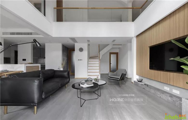 通過各種材質的形態(tài)組合,光與影的交織,肌理與形態(tài)的搭配,演繹了一種無限延展的自然之美。淺灰色地板與白色乳膠漆搭配大面積木質電視背景墻,構建一面質樸沉穩(wěn)的空間感,黑色皮質沙發(fā)與電視遙遙相望,打造一方寧靜安閑的悠悠居所。