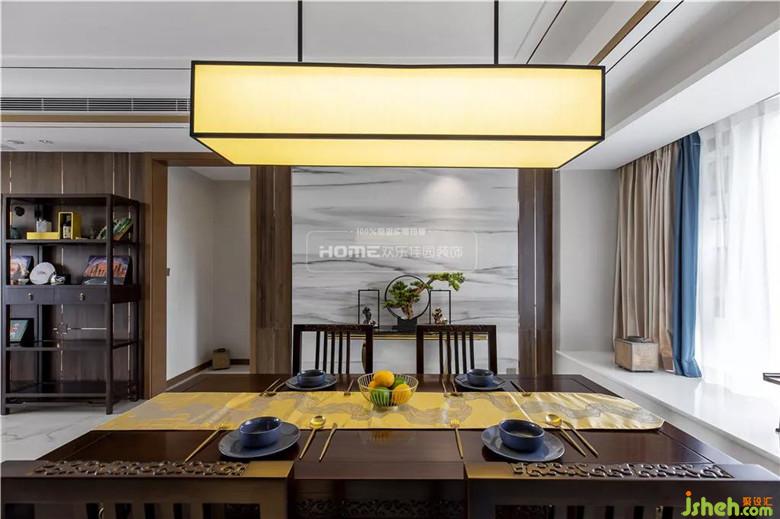 淡彩鋪陳水墨,清淺相宜配色,意境空間簡化成幾何體塊,布局結(jié)合中式的韻味和現(xiàn)代的簡約。拼接設(shè)計(jì)的新中式布藝吊燈,如暈開的水墨般,在燈光的映照下,層次分明,意蘊(yùn)盡展。