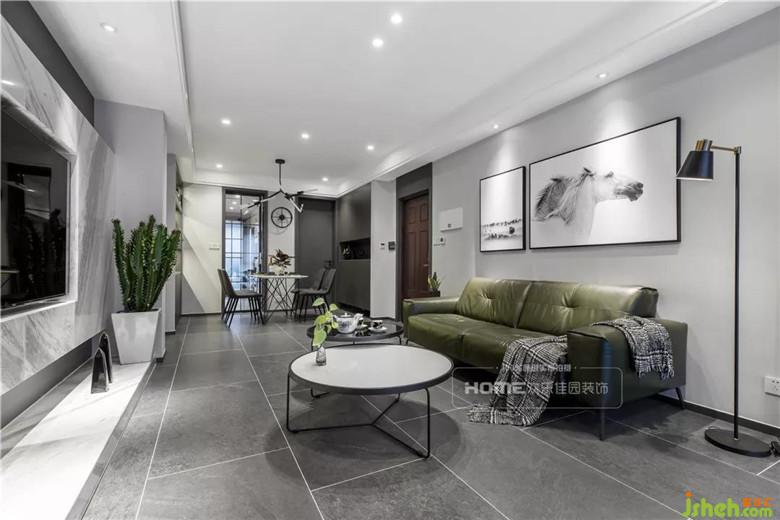 整體墻面以簡單的淺灰色為主基調(diào),隨遇而安的氛圍在步入客廳就能感受到,墨綠色的皮質(zhì)沙發(fā)毫無疑問是一大吸睛點(diǎn),提升逼格的同時(shí)限制了周圍顏色的鋪展,這正好是小二姐想要表達(dá)的生活方式,簡潔大氣,隨意卻不失精致感。