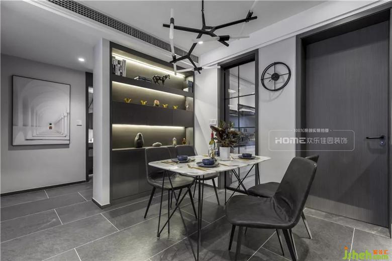 被儲物柜擁簇的餐廳空間,在不占用餐廳空間的前提下,設(shè)計師在兩側(cè)增加了餐邊柜和儲物柜,實用的細節(jié)處理,明確的功能劃分,在保證空間干凈利落的同時,滿足了小二姐的儲物需求。