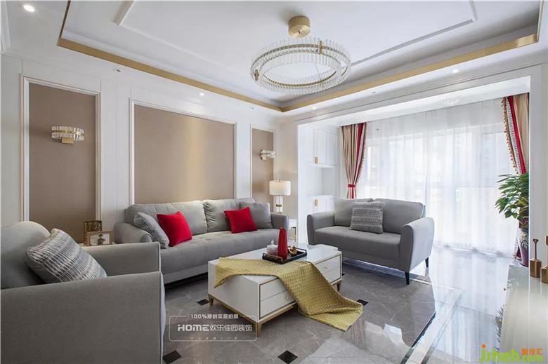 三口之家,女主人獨愛大紅色,男主人喜愛金色,所以整體裝修是以大紅色搭配金色的法式輕奢風(fēng)格;裝修公司空間并沒有大面積使用紅色和金色,大面的白色凸顯金色的精致時尚,灰色與紅色一冷一暖對比,營造驚艷空間。