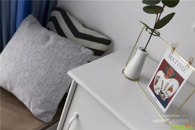 次臥有設(shè)計(jì)感的墻面分色,制造視覺焦點(diǎn),一邊藍(lán)、一邊白,靈動(dòng)又自然,不規(guī)則、不對(duì)稱,方能表達(dá)出不刻意的隨性;魚骨拼矮飄窗,貫穿整個(gè)家居空間,在第一縷暖陽(yáng)中睜開惺忪的睡眼,流動(dòng)的線條引領(lǐng)著美好的開端。