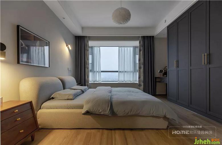 將主臥原有的小衣帽間拆除,增大整體空間,在床尾設(shè)計(jì)通頂衣柜,增加臥室的儲(chǔ)物空間。