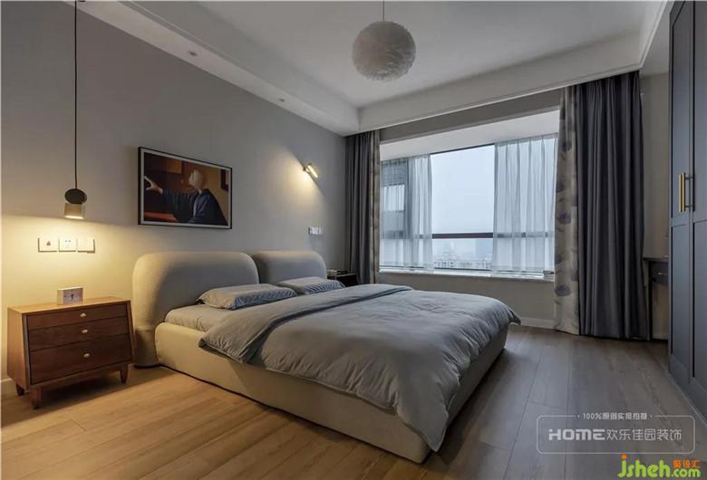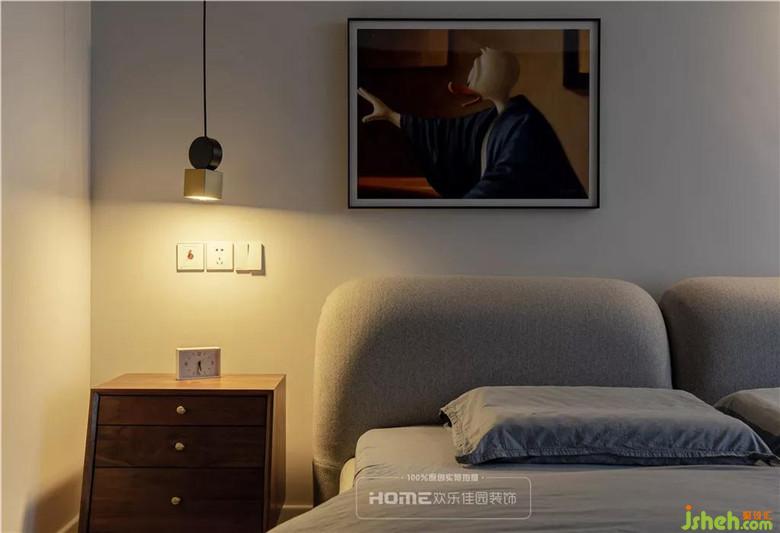低飽和度的灰色背景墻,散發(fā)著沉穩(wěn)而素凈的氣息,暖色的木地板卻又讓人在冷色中感到溫暖,設(shè)計(jì)師通過(guò)明暗關(guān)系的變化,保持空間色彩的平衡,讓空間布局更有深度。
