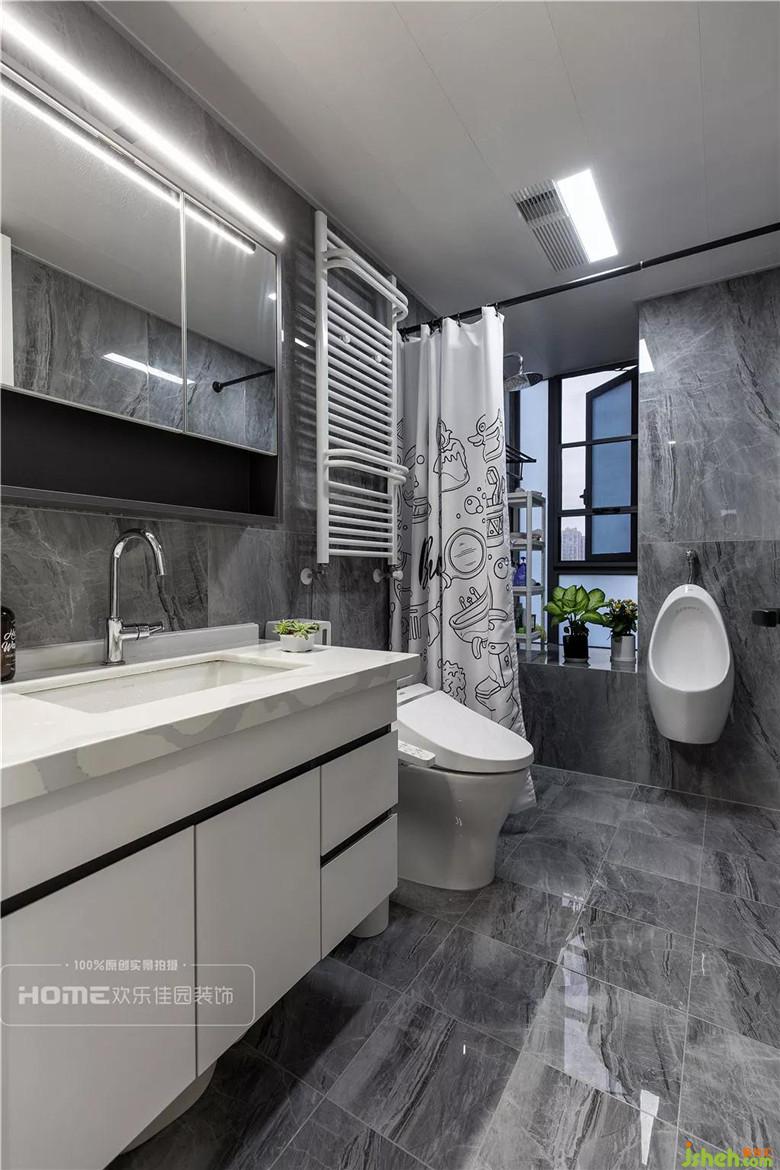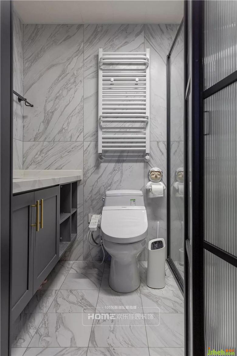 衛(wèi)生間的布局中,從淋浴區(qū)到洗漱臺(tái),巧妙的結(jié)構(gòu)讓各自功能互不干擾,合理的使用隔斷使衛(wèi)生間的環(huán)境整潔美觀。