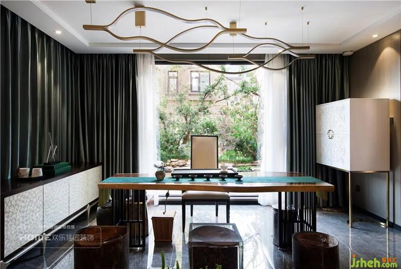 品茶區(qū)大尺寸的落地窗將戶(hù)外花園的水景景觀無(wú)限放大,外景與內(nèi)景完美的融合,別有一番趣味。