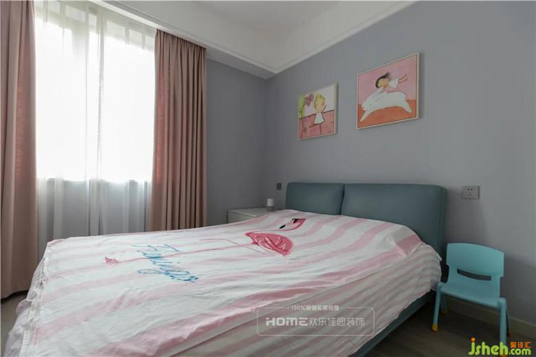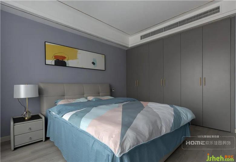 主臥的軟飾和配色趨向于閑適與放松,低飽和度的中性灰,簡單的幾何圖形和抽象掛畫作為裝飾,符合當下簡約而不失品味的生活追求,呈現(xiàn)一派舒適悠閑的生活景象。