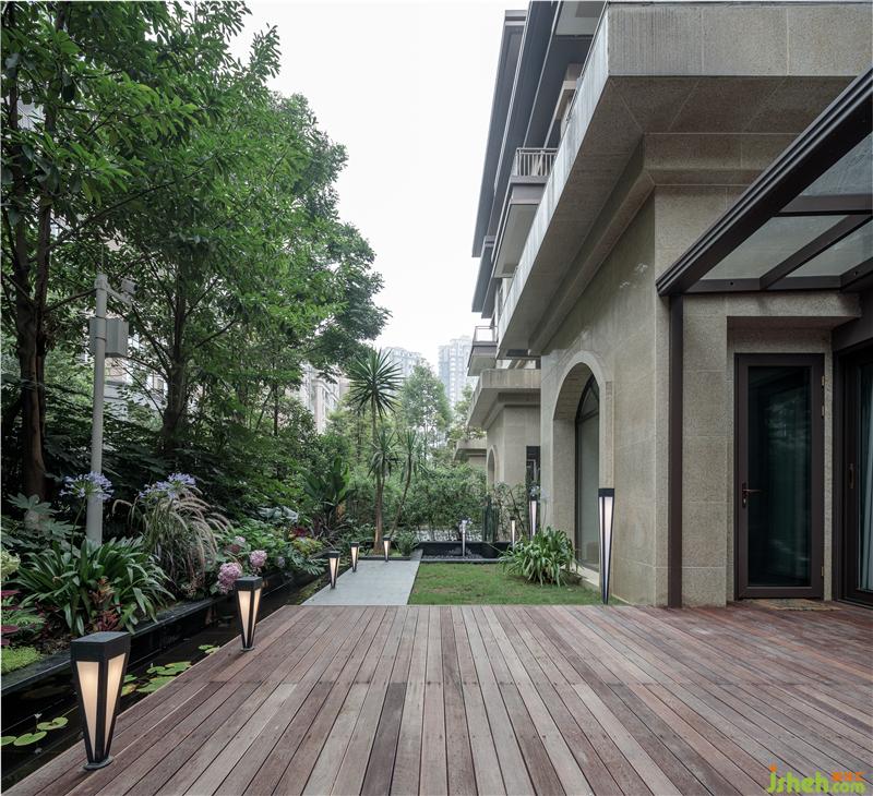 空間的分隔與利用;室內(nèi)設(shè)計師將一樓整個空間做了開放式布局,拆掉了原廚房,衛(wèi)生間的墻體,空間布局上重新進行分隔,原廚房衛(wèi)生間的空間改造成了西式廚房,中式廚房擴展到了外面,滿足了中西式廚房的生活功能需求,前后靠花園的墻體都做了采光的引入,加高加寬做了落地玻璃,同時也讓室外的花園空間借景入到了室內(nèi),