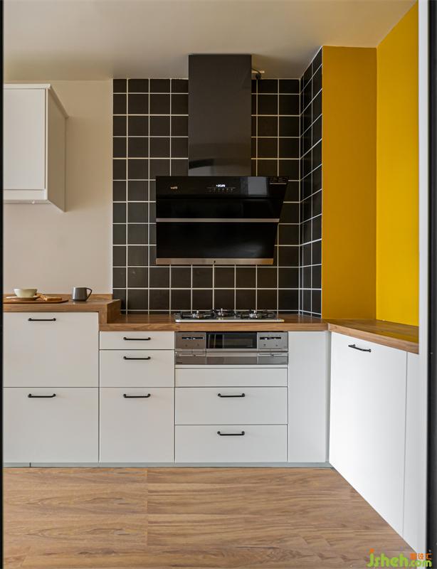 根據(jù)業(yè)主的烹飪習(xí)慣,在成都家居設(shè)計(jì)中摒棄傳統(tǒng)門檻石以及瓷磚,將客廳地板延續(xù)到廚房位置,使空間更簡(jiǎn)潔,整體性也更強(qiáng)。并在墻面采用專用防水漆,增加空間色彩層次。