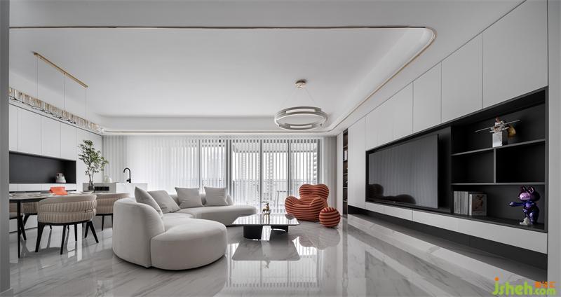 客廳打破傳統(tǒng)布局,將空間化零為整,將書房、客廳、餐廳延展在一起,以全新的視覺效果出現(xiàn),開放式的格局,當(dāng)自己在工作或者休閑的時(shí)候都能和另一半有情感的對話交流,而不是在工作之外的閑暇之余各自干各自的。