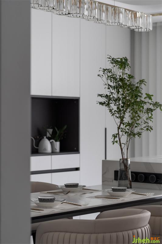 餐廳采用島臺加餐桌的設(shè)計(jì)方式;在吧臺做做手工,做做烘培;不僅撫慰自己的胃,也更撫慰焦慮的心。