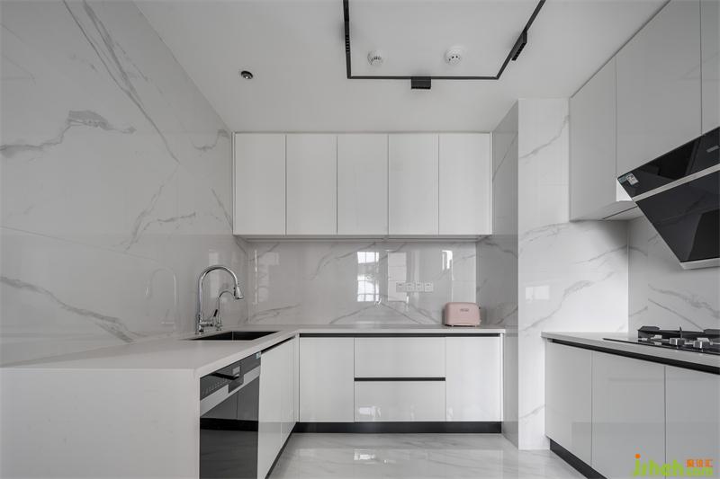 刪繁就簡,去偽存真,灰色墻面及白色爵士白瓷磚連紋在一起使整個(gè)空間顯得格外生動(dòng),猶如絲帶在起舞。