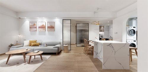 本案例業(yè)主是90后海歸,父母在同小區(qū)有一套別墅。兩口之家,喜歡簡潔清爽明亮的空間氛圍。在國外生活時間比較長也非常喜歡開放式廚房。