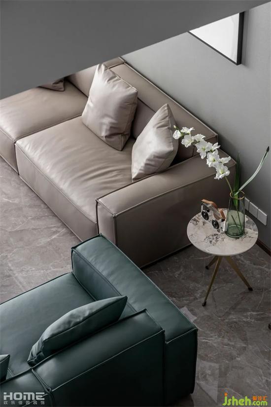 客廳采用無主燈設(shè)計(jì),避免用吊燈會(huì)使空間感壓抑,墻面使用藝術(shù)涂料,增強(qiáng)空間高級(jí)感。