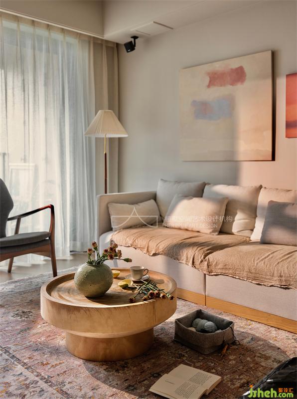 陽光透過紗幔灑向室內(nèi),為生活留下自在隨性的痕跡。干凈柔和的墻面,紋理隨意的實(shí)木家具,麻布呈現(xiàn)出自然的褶皺,讀到一半的書,放在地毯上的織物,和還未插完的鮮花...