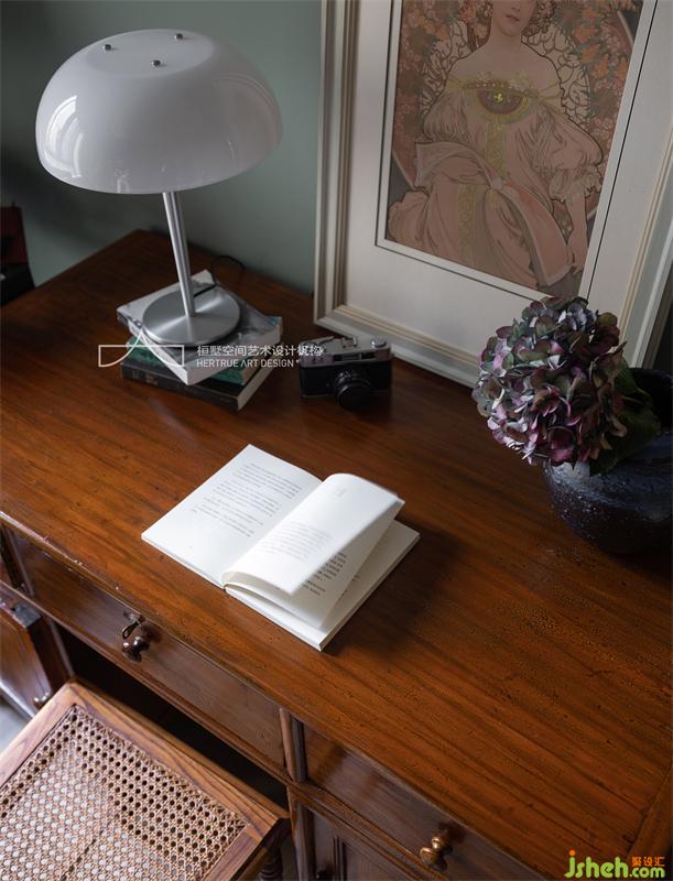 書桌是小時(shí)候就在用的老家具,承載著童年的美好回憶,重慶家居設(shè)計(jì)這次新家裝修特意搬了過來,書柜的配色便是參考書桌的感覺來的,非洲柚木,黃銅拉手,細(xì)管長(zhǎng)虹玻璃,濃郁的復(fù)古味兒,封閉和開放形式相結(jié)合,玻璃元素的參與讓它有了通透感。