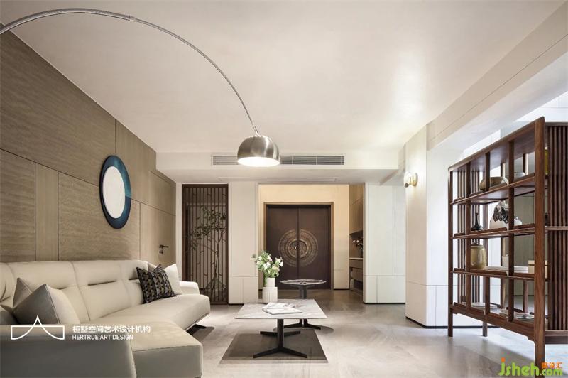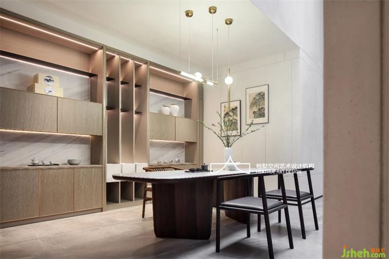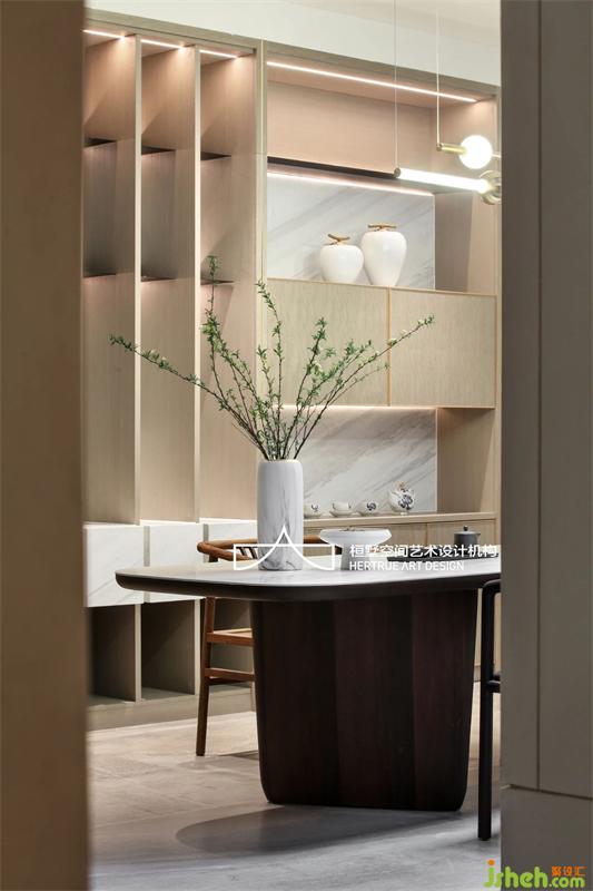 將中式線型留白意境重新組織語言,巧妙修飾大型承重柱并起到修平原來土建墻面基礎(chǔ)的嚴(yán)重錯(cuò)位不平整。