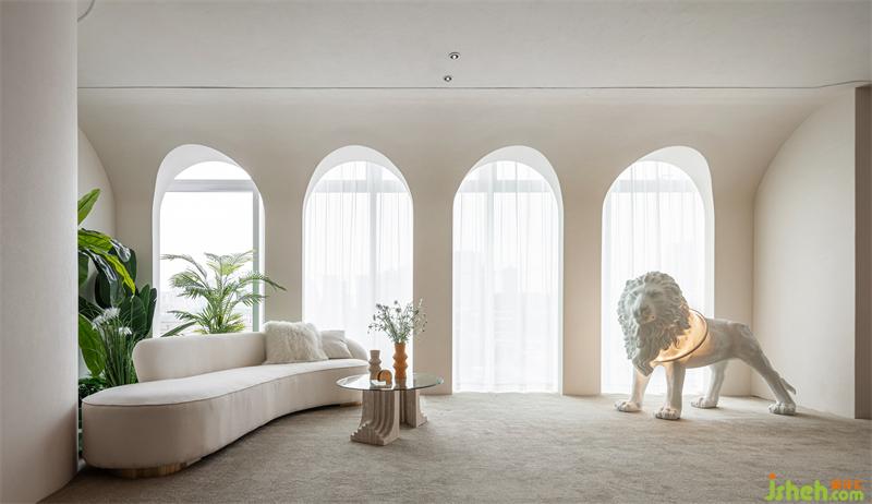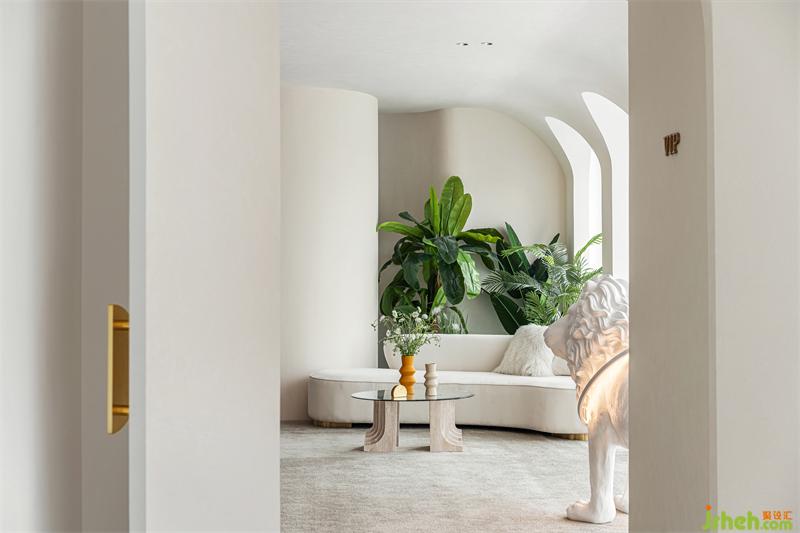 Listen to the extreme expression of white, build a large amount of white geometry with the combination of arc and curved surface, and the smooth arc wall extends upwards to the top, keeping the overall sense of quietness, so that the rich spatial structure emphasizes the resonance between space and soul.