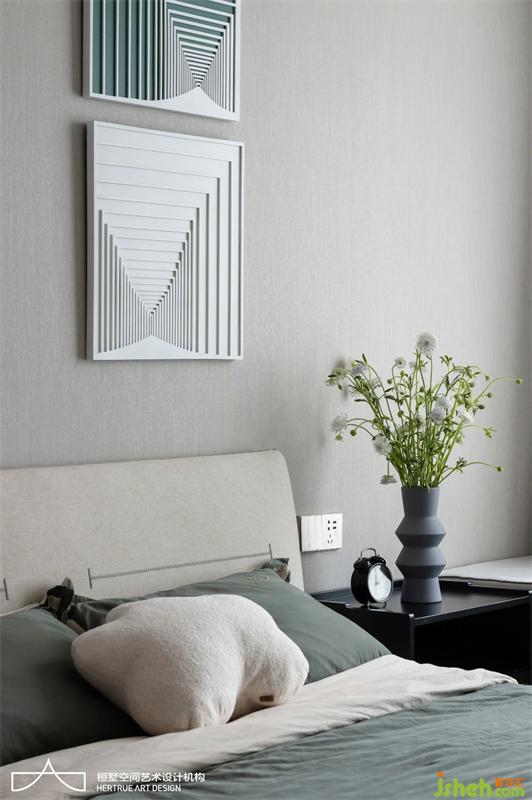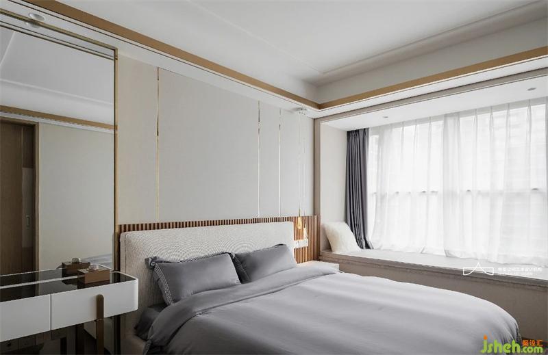主臥采用中性灰色調(diào)統(tǒng)一雅致,