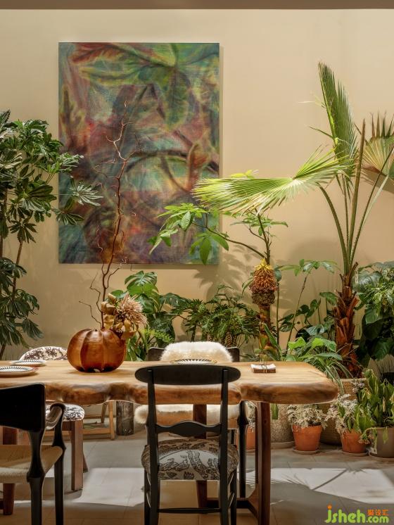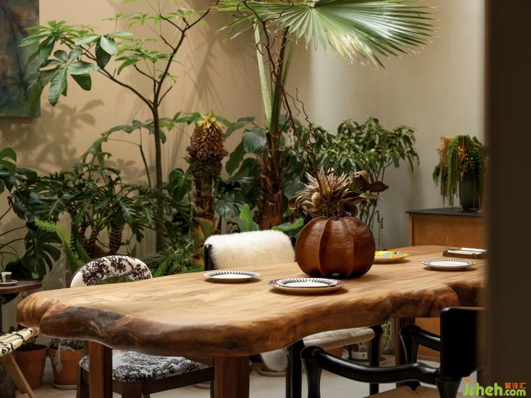 很難想象設(shè)計師在這個地上一層、地下兩層的格局內(nèi)置入了一個“四季花園”,躍墅設(shè)計借用天井引入自然光。這座自然和精神共享的堡壘,以自由迷人的盛放為整個家寫下序言。