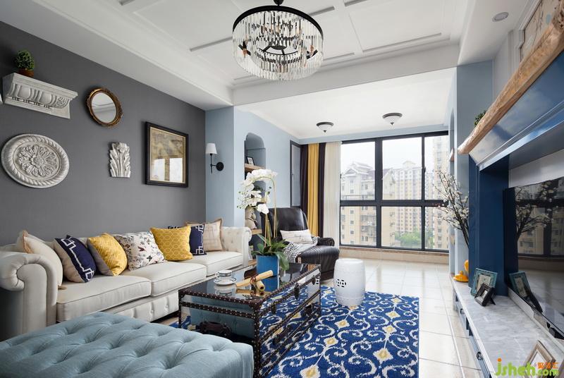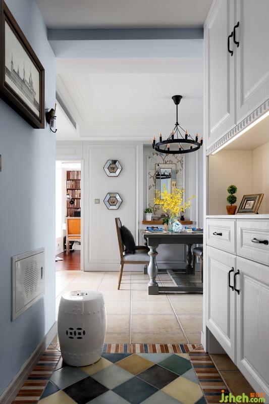 本次案例是一個(gè)125方的普通公寓房,有限的空間里承載著年輕夫妻的美好生活期望。通過(guò)室內(nèi)設(shè)計(jì)師的精心雕琢將現(xiàn)代美式與古樸禪意相融合,簡(jiǎn)單的對(duì)稱(chēng)布置與色彩穿插,不同程度的藏藍(lán)色與米色的對(duì)比讓空間顯得格外的溫馨、穩(wěn)重、雅致;皮革鉚釘?shù)仍貏t讓空間稍顯復(fù)古玩味,花鳥(niǎo)意境的軟裝又將空間豐富了幾種層次。相信在這樣的人文家居空間,都有種“歲月靜好,安之若素”的情愫吧……