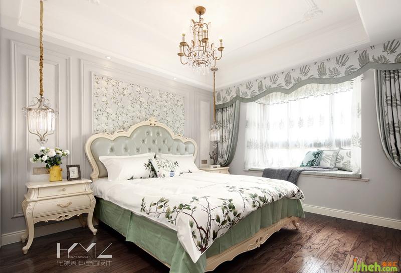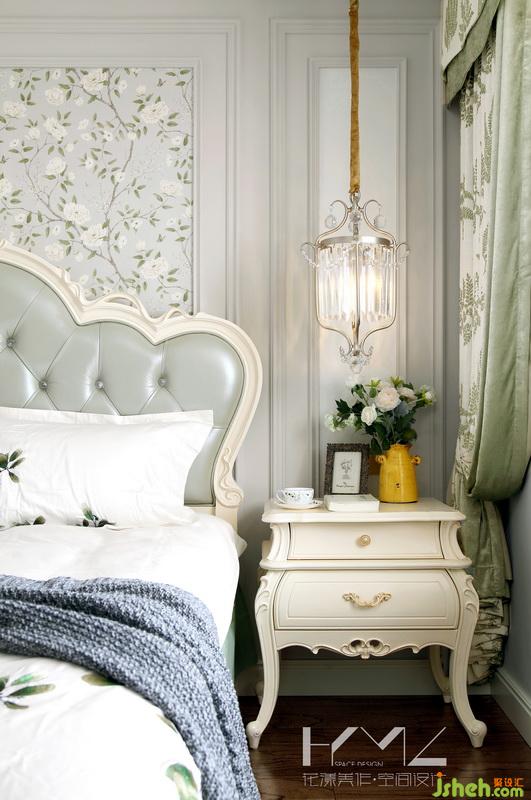 主臥碎花壁紙營造浪漫的鄉(xiāng)村度假氣息,原木色地板讓空間典雅沉靜,綠色的抱枕和紡織床品帶來清風般的清爽,自然而然讓居室洋溢著淡淡的文藝氣息。